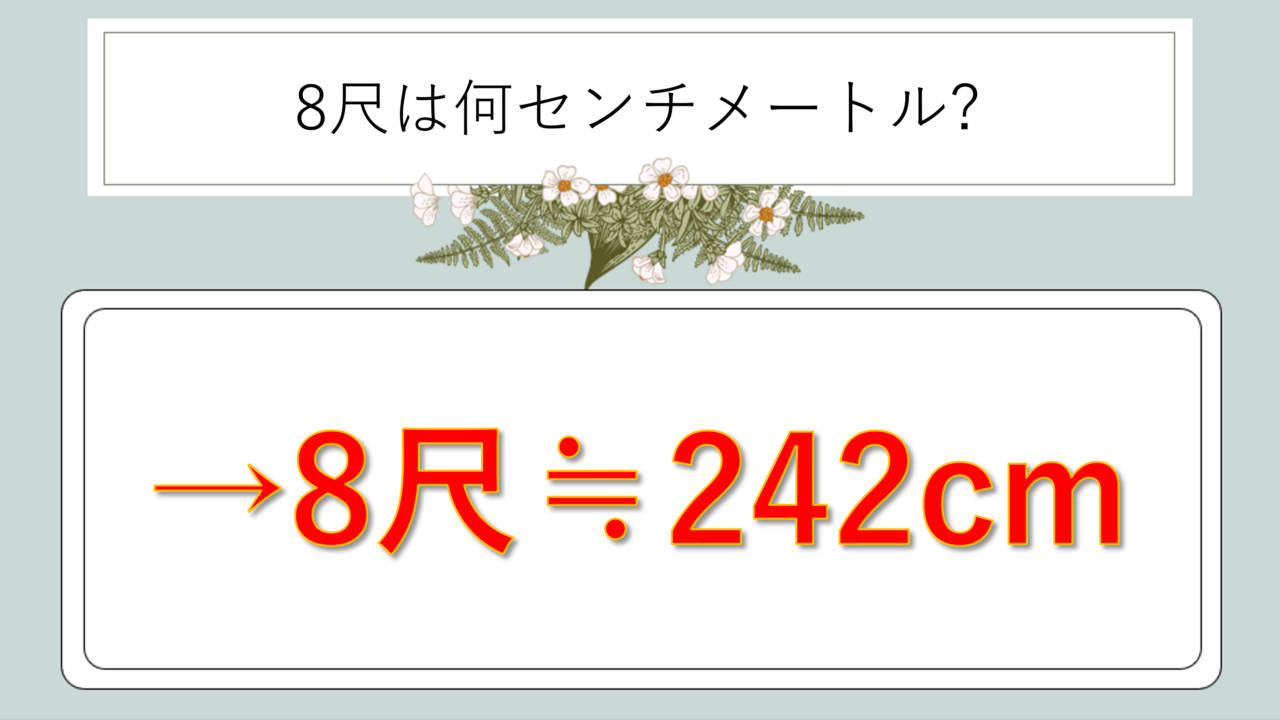 8尺 = 約242センチメートル(正確には242.424…cm)