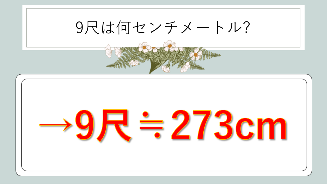 9尺 = 約273センチメートル(正確には272.727…cm)