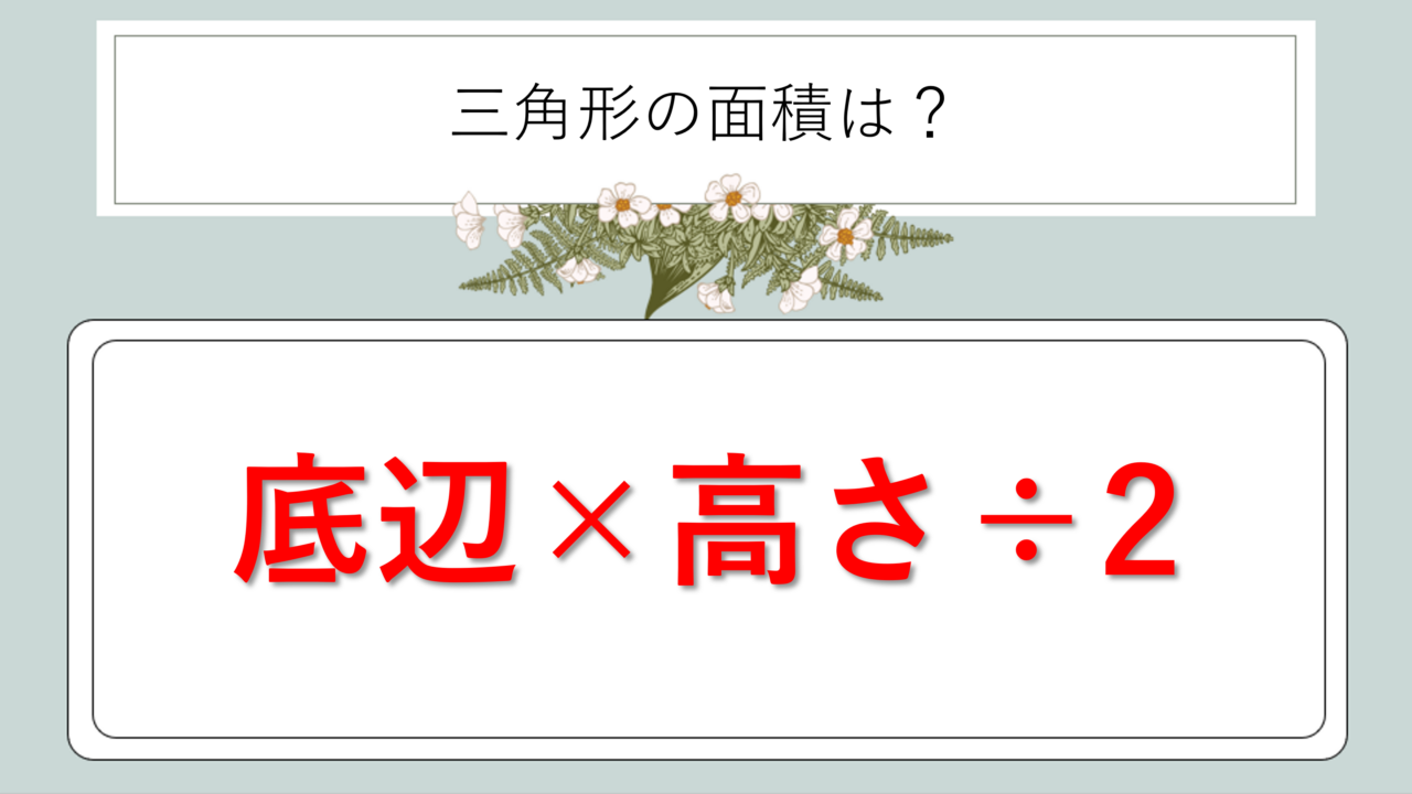 底辺と高さ S = 底辺×高さ÷2 小学〜中学レベル