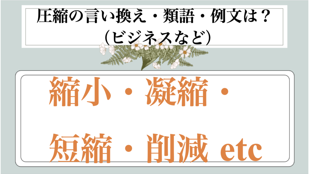 この記事では、圧縮|別の言い方に言い換え(ビジネス|別の言い方|例文|丁寧なメール|敬語)【目上や上司や部下など】について解説していきます。