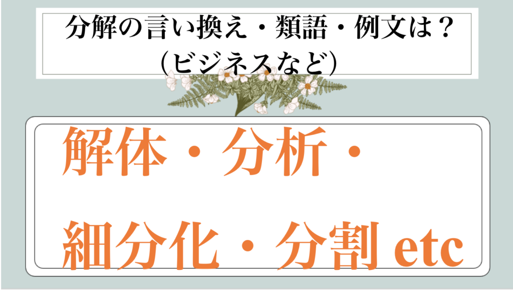まとめ 分解の類語|ビジネス|言い換え|丁寧な言い方|優しい言い方|敬語)【目上や上司や部下など】