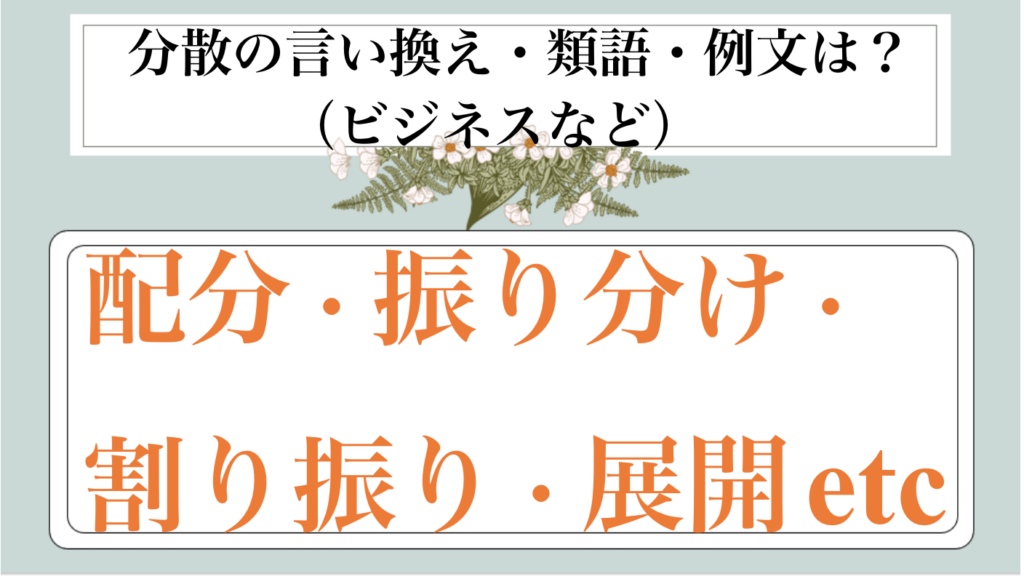 まとめ 分散の類語|ビジネス|言い換え|丁寧な言い方|優しい言い方|敬語)【目上や上司や部下など】