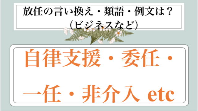 ビジネス用語 放任|言い換え|ビジネス|丁寧な言い方|柔らかい言い方|かっこいい|例文|メール|敬語)【目上や上司や部下など】 rieko.o 白丸くん この記事では、放任|別の言い方に言い換え(ビジネス|別の言い方|例文|丁寧なメール|敬語)【目上や上司や部下など】について解説していきます。 …