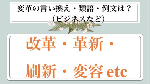 ビジネス用語 変革|言い換え|ビジネス|丁寧な言い方|柔らかい言い方|かっこいい|例文|メール|敬語)【目上や上司や部下など】 rieko.o 白丸くん この記事では、変革|別の言い方に言い換え(ビジネス|別の言い方|例文|丁寧なメール|敬語)【目上や上司や部下など】について解説していきます。 …