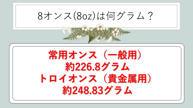 科学 8オンスの重さは何グラム(g)か(tシャツやデニムやパーカーやグローブや金貨:サイズ等も:8oz)か?変換・換算方法やコツも解説! hoppy.yuppy 白丸くん アパレル製品や貴金属の表記で「8oz」という単位を見かけたことはありませんか? オンス(oz)は、主にアメリカやイギリスなどの英語圏で …