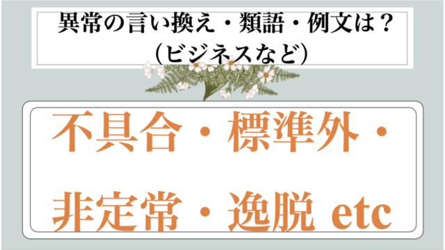 ビジネス用語 異常|言い換え|ビジネス|丁寧な言い方|柔らかい言い方|かっこいい|例文|メール|敬語)【目上や上司や部下など】 rieko.o 白丸くん この記事では、異常|別の言い方に言い換え(ビジネス|別の言い方|例文|丁寧なメール|敬語)【目上や上司や部下など】について解説していきます。 …