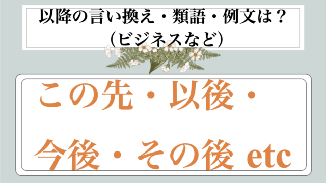 ビジネス用語 以降|言い換え|ビジネス|丁寧な言い方|柔らかい言い方|かっこいい|例文|メール|敬語)【目上や上司や部下など】 rieko.o 白丸くん この記事では、以降|別の言い方に言い換え(ビジネス|別の言い方|例文|丁寧なメール|敬語)【目上や上司や部下など】について解説していきます。 …