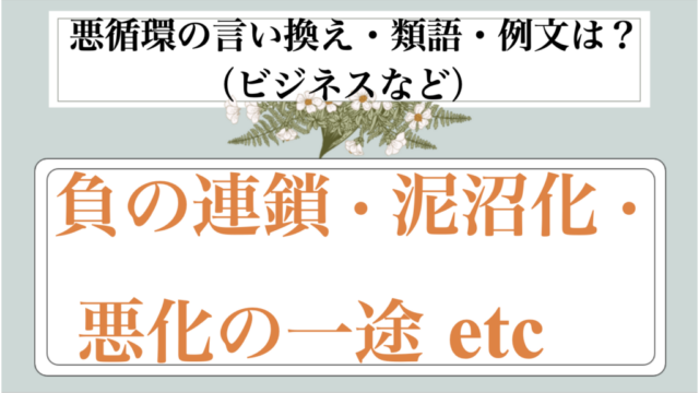 ビジネス用語 悪循環|言い換え|ビジネス|丁寧な言い方|柔らかい言い方|かっこいい|例文|メール|敬語)【目上や上司や部下など】 rieko.o 白丸くん この記事では、悪循環|別の言い方に言い換え(ビジネス|別の言い方|例文|丁寧なメール|敬語)【目上や上司や部下など】について解説していきます …