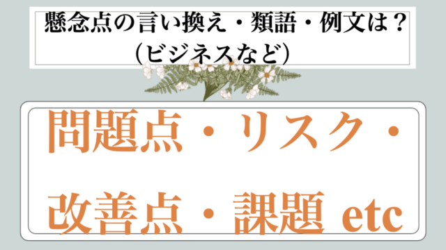 ビジネス用語 懸念点|言い換え|ビジネス|丁寧な言い方|柔らかい言い方|かっこいい|例文|メール|敬語)【目上や上司や部下など】 rieko.o 白丸くん この記事では、懸念点|別の言い方に言い換え(ビジネス|別の言い方|例文|丁寧なメール|敬語)【目上や上司や部下など】について解説していきます …