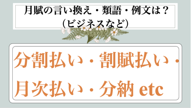 ビジネス用語 月賦|言い換え|ビジネス|丁寧な言い方|柔らかい言い方|かっこいい|例文|メール|敬語)【目上や上司や部下など】 rieko.o 白丸くん この記事では、月賦|別の言い方に言い換え(ビジネス|別の言い方|例文|丁寧なメール|敬語)【目上や上司や部下など】について解説していきます。 …