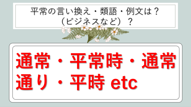 ビジネス用語 平常|言い換え|ビジネス|丁寧な言い方|柔らかい言い方|かっこいい|例文|メール|敬語)【目上や上司や部下など】 hoppy.yuppy 白丸くん この記事では、平常|別の言い方に言い換え(ビジネス|別の言い方|例文|丁寧なメール|敬語)【目上や上司や部下など】について解説していきます。 …