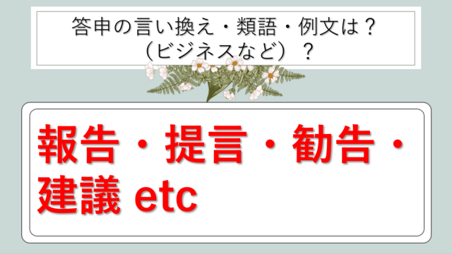 ビジネス用語 答申|言い換え|ビジネス|丁寧な言い方|柔らかい言い方|かっこいい|例文|メール|敬語)【目上や上司や部下など】 hoppy.yuppy 白丸くん この記事では、答申|別の言い方に言い換え(ビジネス|別の言い方|例文|丁寧なメール|敬語)【目上や上司や部下など】について解説していきます。 …