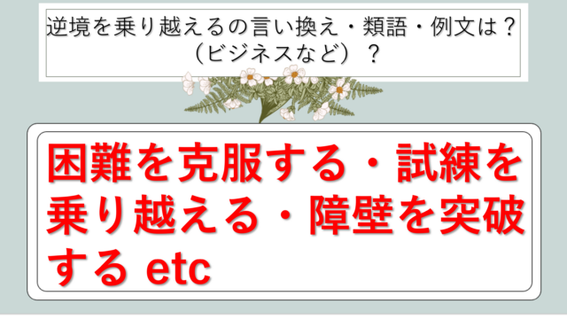 ビジネス用語 逆境を乗り越える|言い換え|ビジネス|丁寧な言い方|柔らかい言い方|かっこいい|例文|メール|敬語)【目上や上司や部下など】 hoppy.yuppy 白丸くん この記事では、逆境を乗り越える|別の言い方に言い換え(ビジネス|別の言い方|例文|丁寧なメール|敬語)【目上や上司や部下など】について解説し …