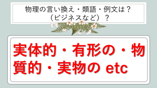 ビジネス用語 物理|言い換え|ビジネス|丁寧な言い方|柔らかい言い方|かっこいい|例文|メール|敬語)【目上や上司や部下など】 hoppy.yuppy 白丸くん この記事では、物理|別の言い方に言い換え(ビジネス|別の言い方|例文|丁寧なメール|敬語)【目上や上司や部下など】について解説していきます。 …