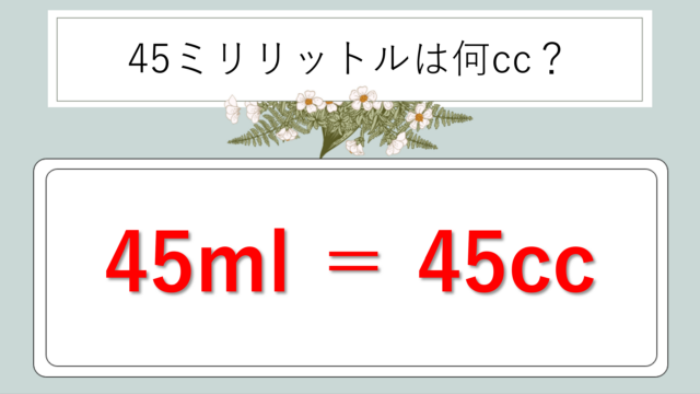 科学 45ミリリットルは何cc(45mlは何cc)か?覚え方や単位変換・換算方法やコツも解説! hoppy.yuppy 白丸くん 「45mlって何ccになるの?」「mlとccは同じ単位なの、それとも別物なの?」と疑問に感じたことがある方は多いのではないでしょうか。 …