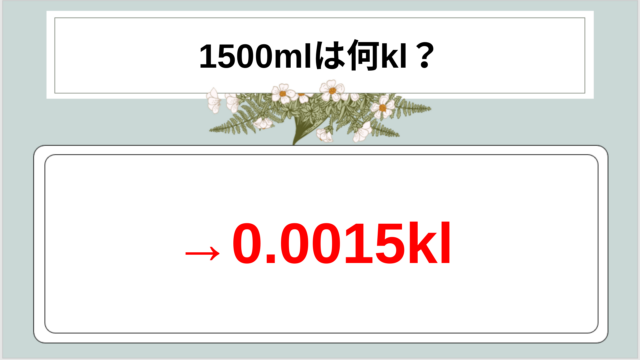 科学 1500ミリリットルは何キロリットル(1500mlは何kL)か?覚え方や単位変換・換算方法やコツも解説! mkk175 白丸くん 1500ミリリットルは何キロリットル(1500mlは何kL)か?覚え方や単位変換・換算方法やコツも解説! 理科の授業や工業分野の書類を …