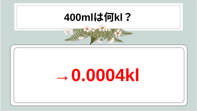 科学 400ミリリットルは何キロリットル(400mlは何kL)か?覚え方や単位変換・換算方法やコツも解説! mkk175 白丸くん 400ミリリットルは何キロリットル(400mlは何kL)か?覚え方や単位変換・換算方法やコツも解説! 理科の授業や工業分野の書類を見て …