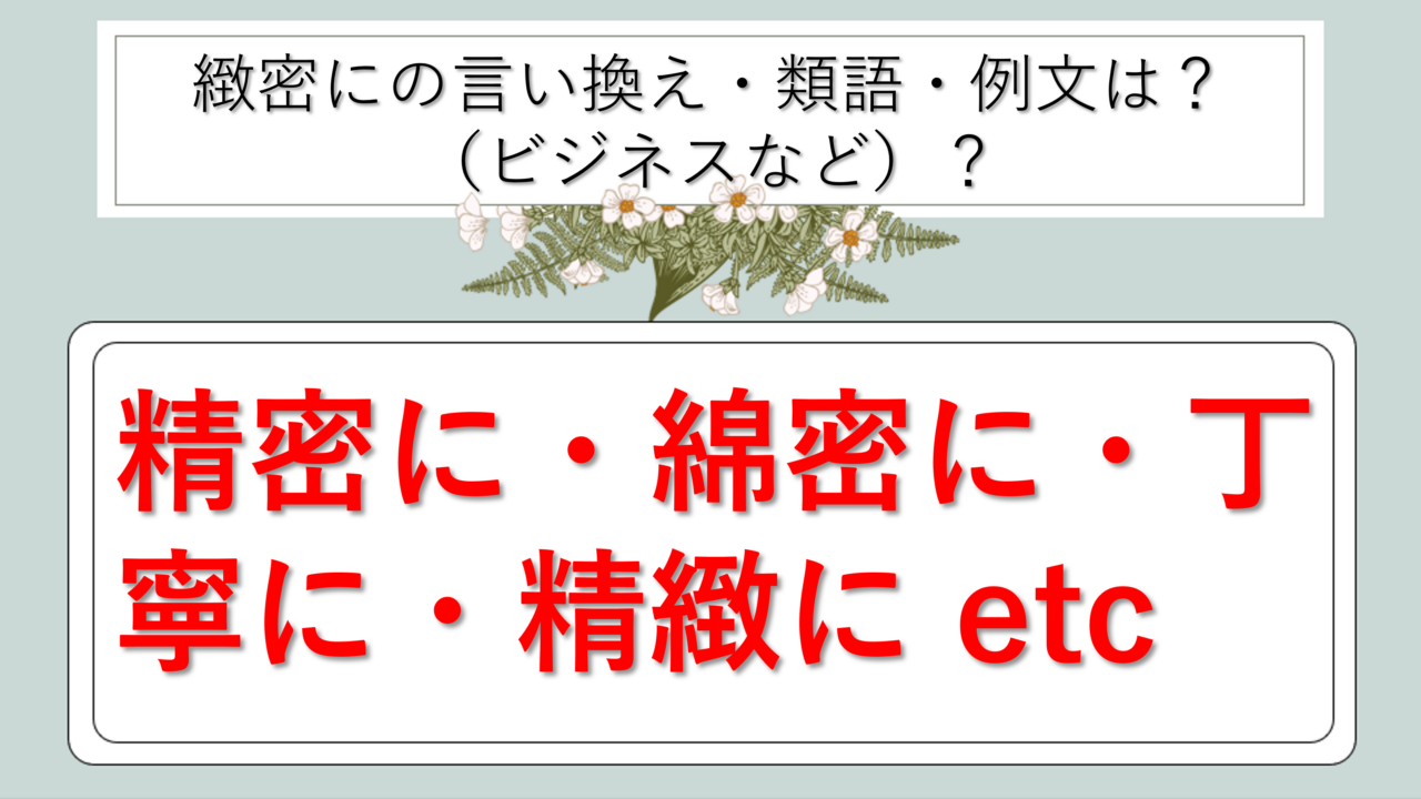 まとめ 緻密にの類語|ビジネス|言い換え|丁寧な言い方|優しい言い方|敬語)【目上や上司や部下など】