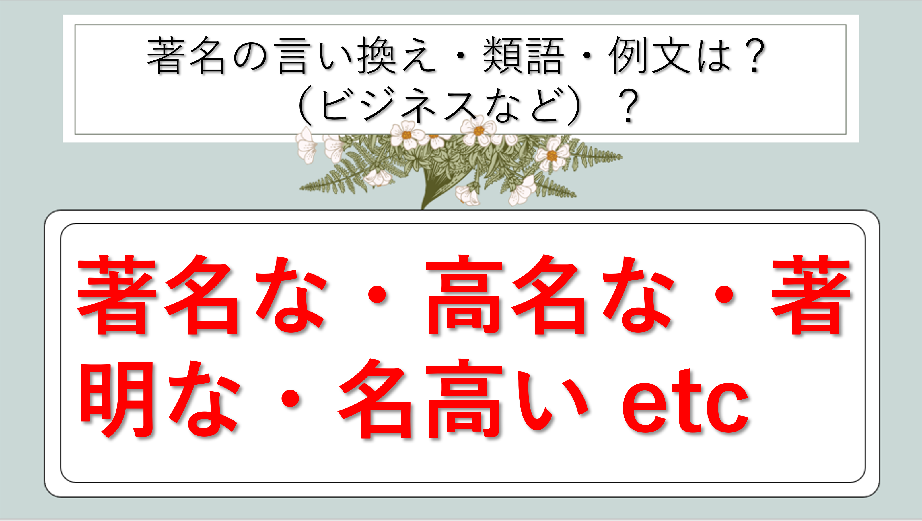 まとめ 著名の類語|ビジネス|言い換え|丁寧な言い方|優しい言い方|敬語)【目上や上司や部下など】