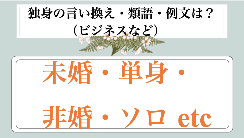まとめ 独身の類語|ビジネス|言い換え|丁寧な言い方|優しい言い方|敬語)【目上や上司や部下など】