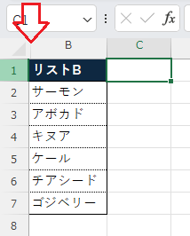 数式バーの左側にある名前ボックス(セル番地が表示される部分)をクリックします