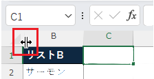 A列の列番号付近(AとBの境界線)にマウスカーソルを合わせます。