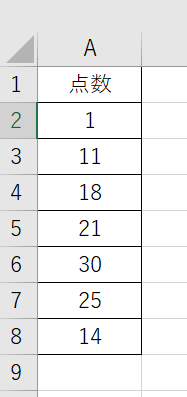 例えばA列に「点数」や「売上金額」などの数値データが入力されており、1行目はヘッダーの場合を考えます。
