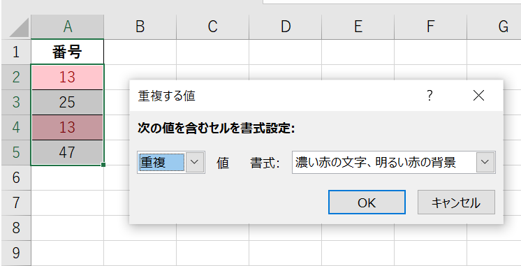13が2つあれば、両方とも赤い背景で表示されるわけです。