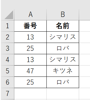 番号13と25が重複していた場合、2回目以降の行が削除されるわけです。