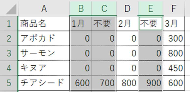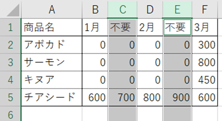 連続していない、離れた位置にある複数の列をまとめて削除したい場合もあります。