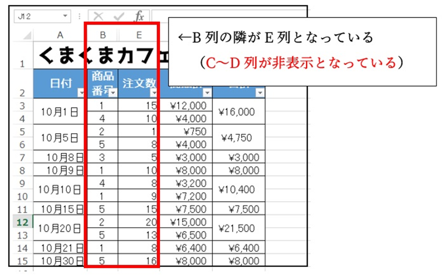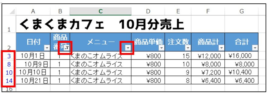 フィルターが適用されていると、条件に合わない行が自動的に非表示になりますが、これは通常の「再表示」では元に戻せません。