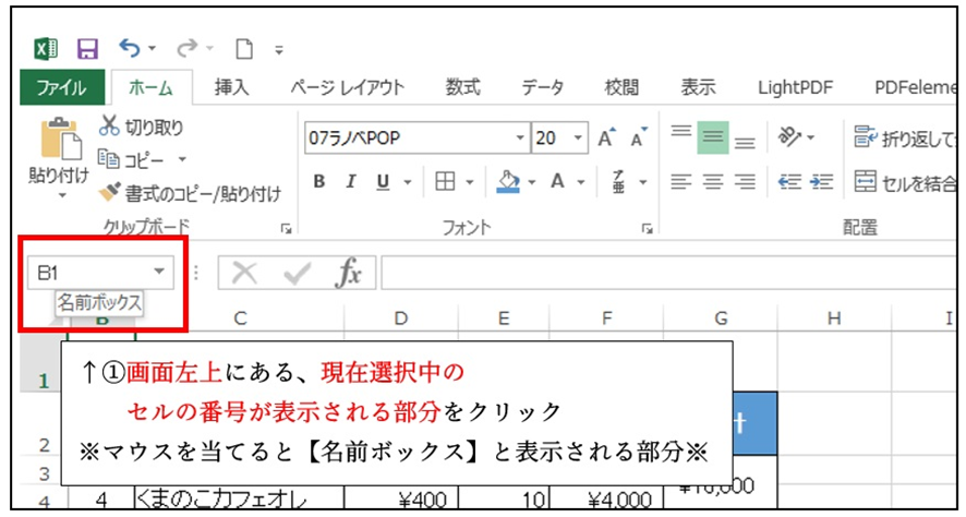 エクセルで1列目(A列)や1行目が再表示できない場合の解決方法2【名前ボックスを使った特殊な操作】