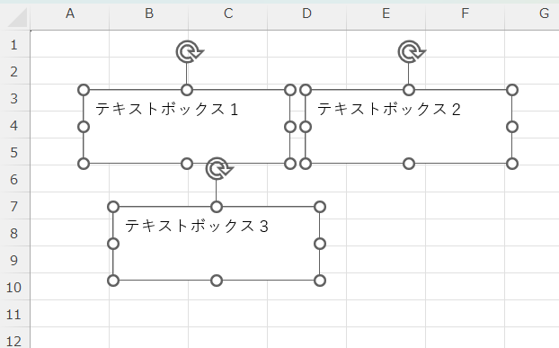 最初のテキストボックスの枠線をクリックして選択し、Ctrlキーを押しながら他のテキストボックスの枠線をクリックしていきます。