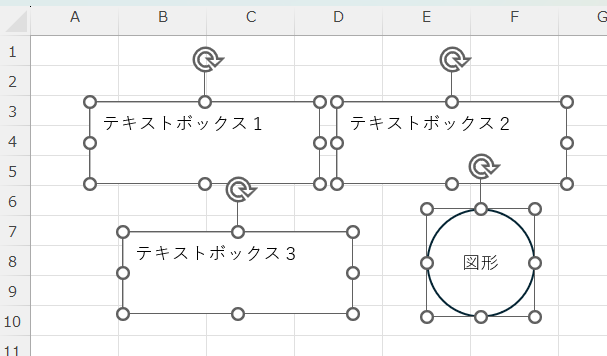 これで、シート内の全てのオブジェクト(テキストボックス、図形、画像など)が選択されるわけです。