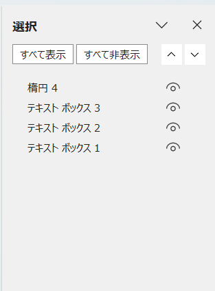 画面の右側に「選択」ペイン(または「オブジェクトの選択と表示」ペイン)が表示されます。