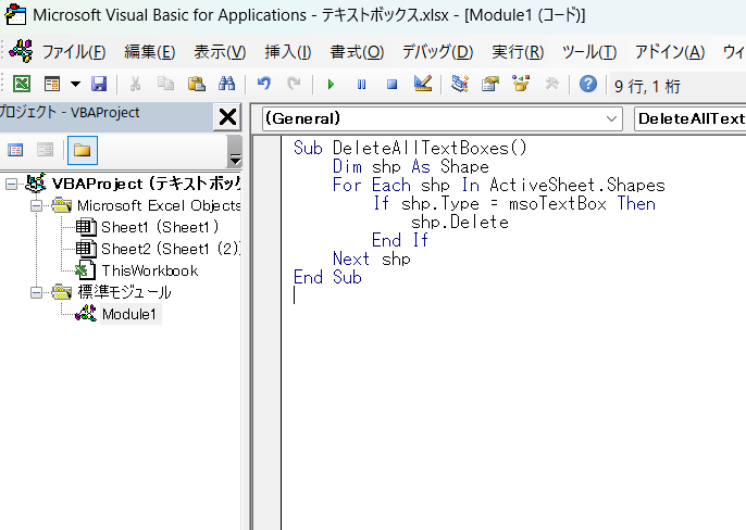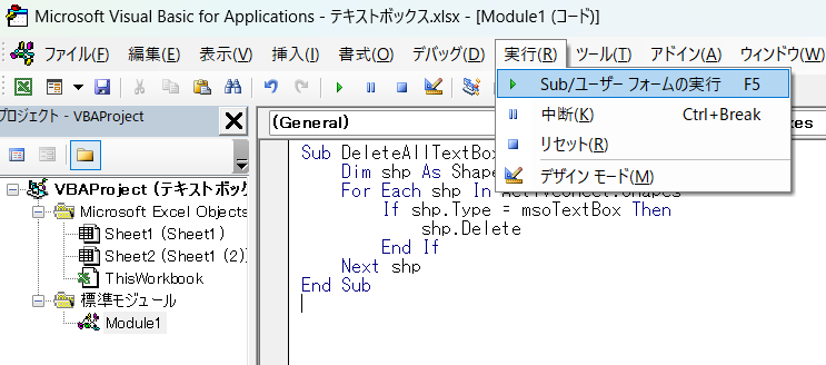 エクセルでマクロを使ってテキストボックスを削除する方法4【VBAで自動化】