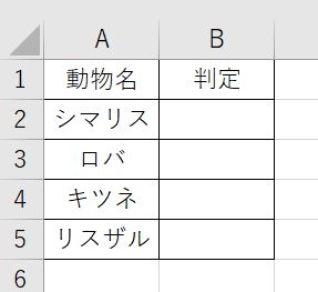 この数式は、A2セルに「リス」という文字が含まれていれば「小動物」と表示し、含まれていなければ空白を表示します。