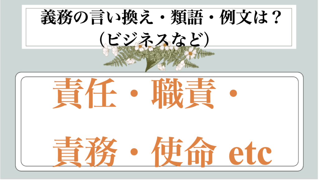 まとめ 義務の類語|ビジネス|言い換え|丁寧な言い方|優しい言い方|敬語)【目上や上司や部下など】
