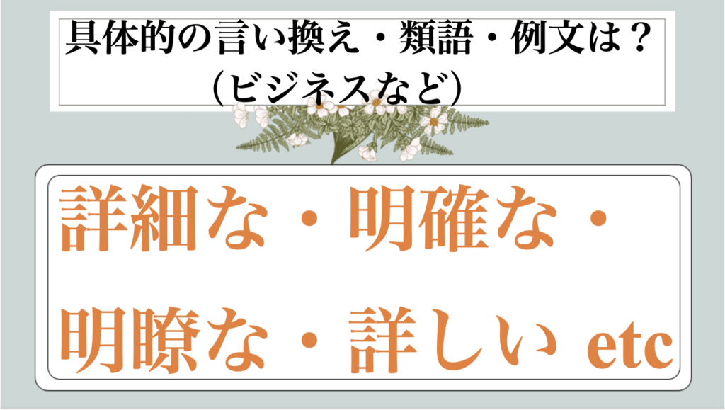 まとめ 具体的の類語|ビジネス|言い換え|丁寧な言い方|優しい言い方|敬語)【目上や上司や部下など】