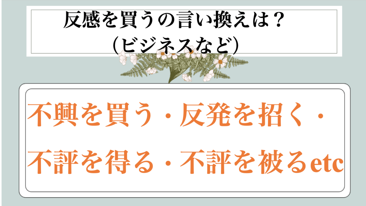まとめ 反感を買うの類語|ビジネス|言い換え|丁寧な言い方|優しい言い方|敬語)【目上や上司や部下など】