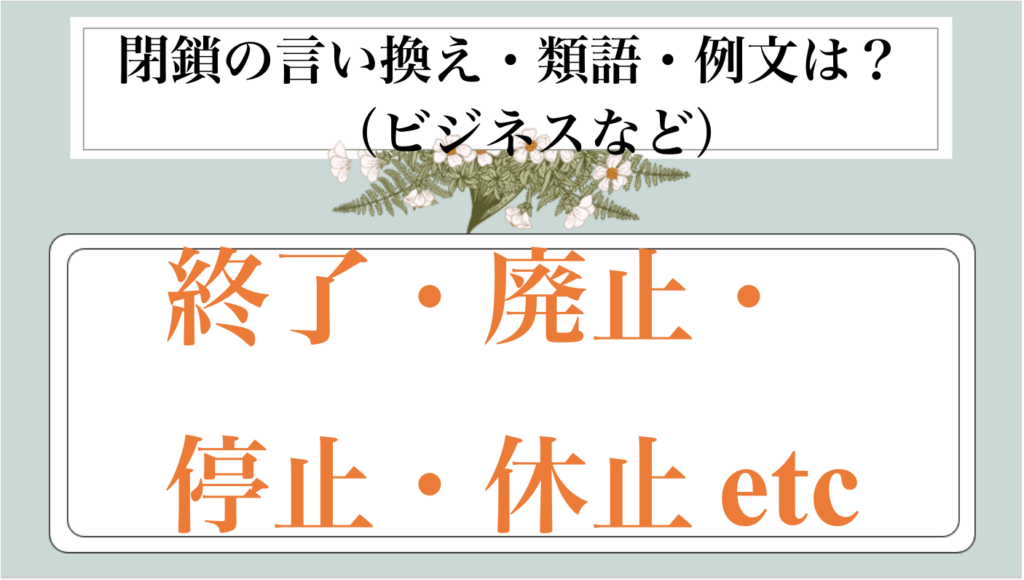 まとめ 閉鎖の類語|ビジネス|言い換え|丁寧な言い方|優しい言い方|敬語)【目上や上司や部下など】