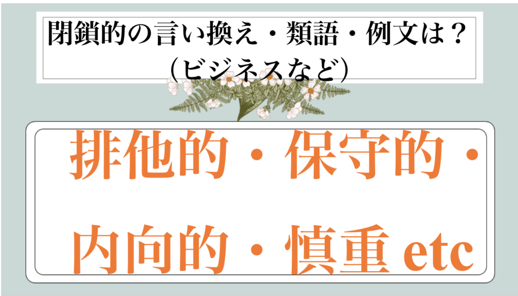 まとめ 閉鎖的の類語|ビジネス|言い換え|丁寧な言い方|優しい言い方|敬語)【目上や上司や部下など】
