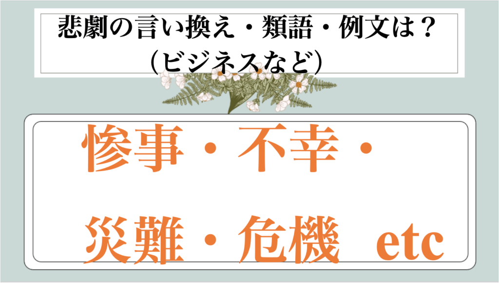 この記事では、悲劇|別の言い方に言い換え(ビジネス|別の言い方|例文|丁寧なメール|敬語)【目上や上司や部下など】について解説していきます。