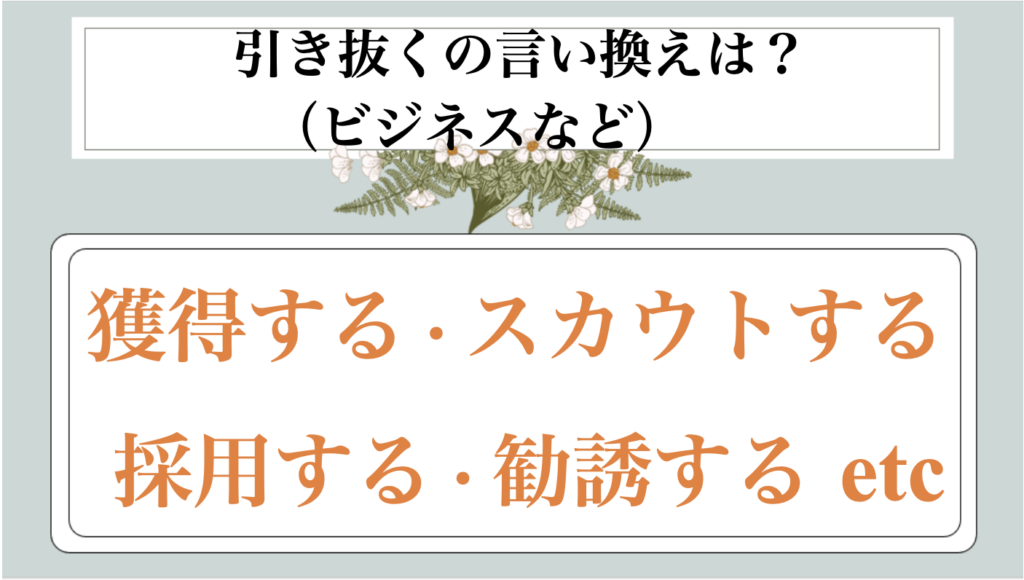 この記事では、「引き抜く」を別の言葉に言い換える方法を、ビジネスシーンと日常会話の両方で使える例文とともに解説しました。