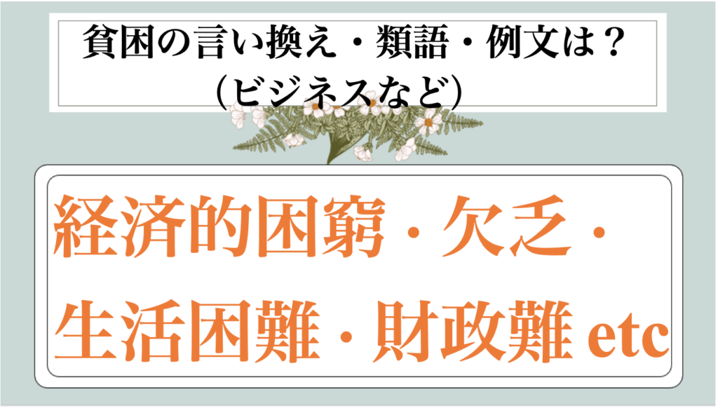 まとめ 貧困の類語|ビジネス|言い換え|丁寧な言い方|優しい言い方|敬語)【目上や上司や部下など】