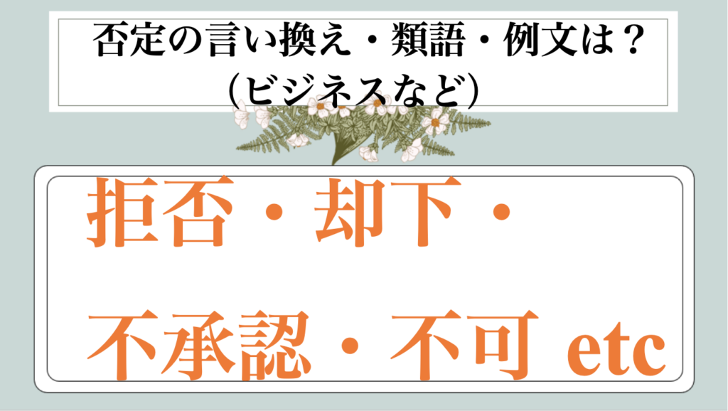 まとめ 否定の類語|ビジネス|言い換え|丁寧な言い方|優しい言い方|敬語)【目上や上司や部下など】