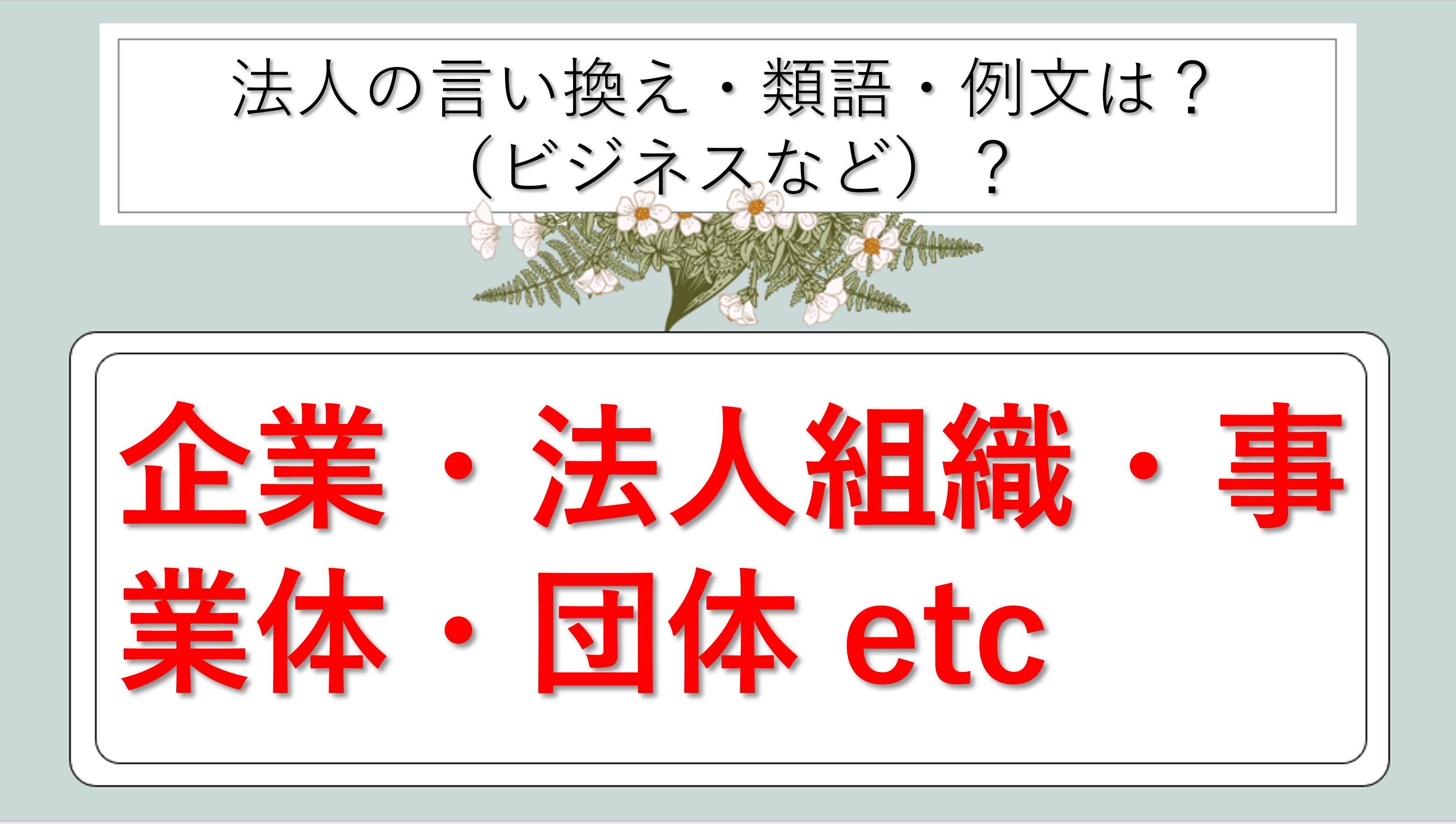 まとめ 法人の類語|ビジネス|言い換え|丁寧な言い方|優しい言い方|敬語)【目上や上司や部下など】