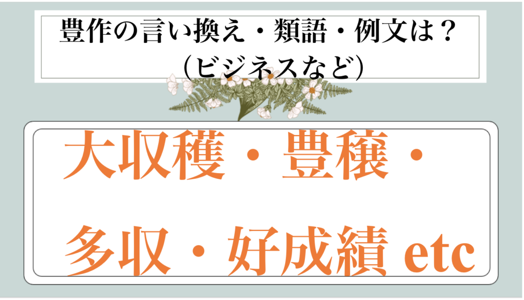 まとめ 豊作の類語|ビジネス|言い換え|丁寧な言い方|優しい言い方|敬語)【目上や上司や部下など】