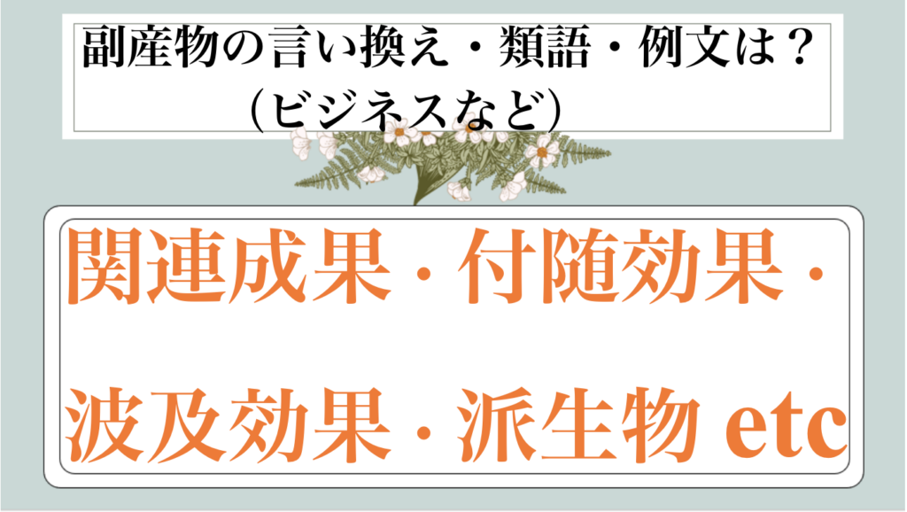 この記事では、副産物|別の言い方に言い換え(ビジネス|別の言い方|例文|丁寧なメール|敬語)【目上や上司や部下など】について解説していきます。
