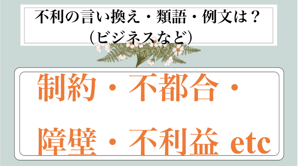 まとめ 不利の類語|ビジネス|言い換え|丁寧な言い方|優しい言い方|敬語)【目上や上司や部下など】